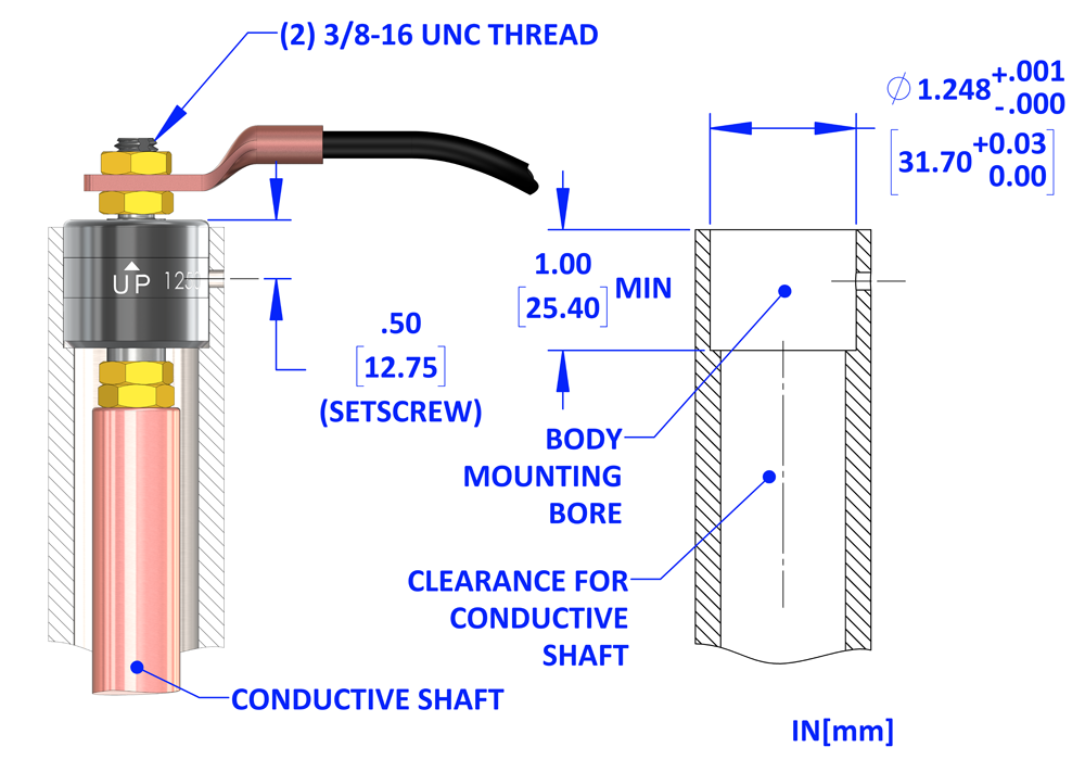 The body of the 1250 series Mercotac™ unit is electrically “hot” to the internal conductor