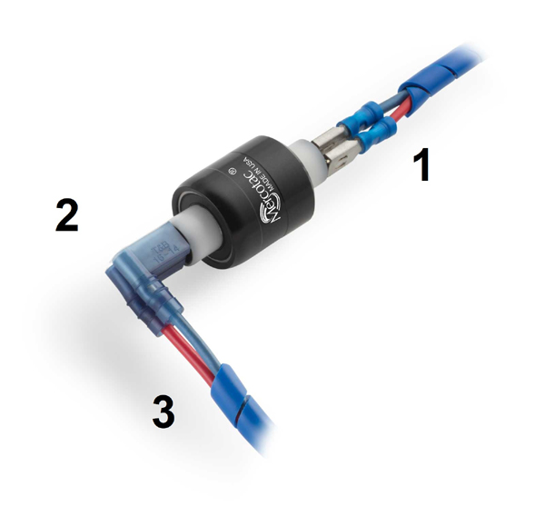 3. Wires crimp to terminals. (Suggested tool: Thomas & Betts #WT 112M)