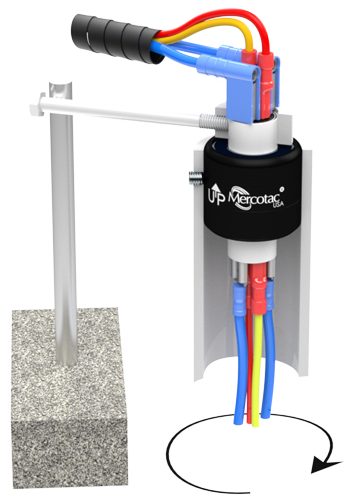 The Mercotac® Model 230 brushless slip rings are used in airfield lighted windsocks to allow rotation to indicate wind direction while maintaining electrical connectivity to the lighting system to increase visibility in low light conditions. They are also used in any application that requires up to two 30 Amp channels, such as in laminating machines.