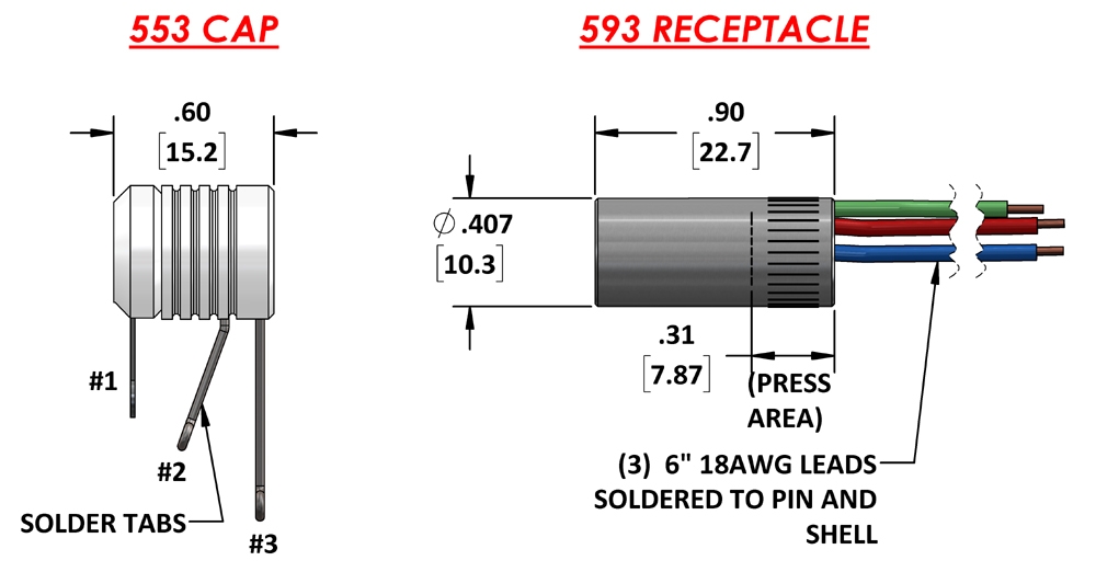 A receptacle is used for mounting to the rotating device. The accessories are required for wire connections, since the Mercotac units cannot be soldered to directly. Order Separately.